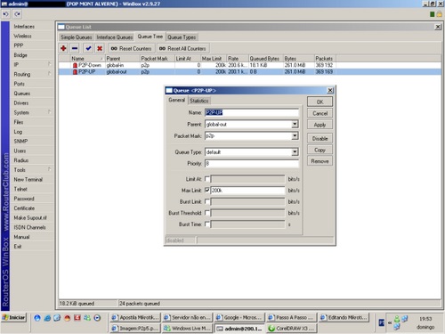 - MAX LIMIT = Define el limite máximo de banda reservado para o P2P. En este caso, es un total de 200k para p2p