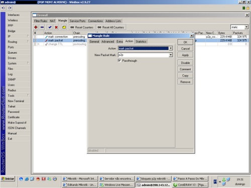 En el campo “ACTION”, seleccione “MARK PACKET”, en el campo “NEW PACKET MARK”, defina otro nombre (en este caso es “p2p”.